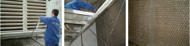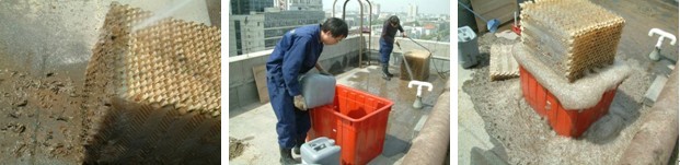 由于冷卻塔長年暴露在外,風扇的吸附力很強,使大量的泥沙、污物進入塔內(nèi),長時間運行會使冷卻塔慢慢的降低散熱能力,布水器出水孔很容易堵塞,泥沙及污垢也很容易進入冷卻水系統(tǒng)中去,將直接影響冷卻水系統(tǒng)的正常制冷。為了防止上述情況發(fā)生,將損失將到最低,必須對冷卻塔進行定期清洗。